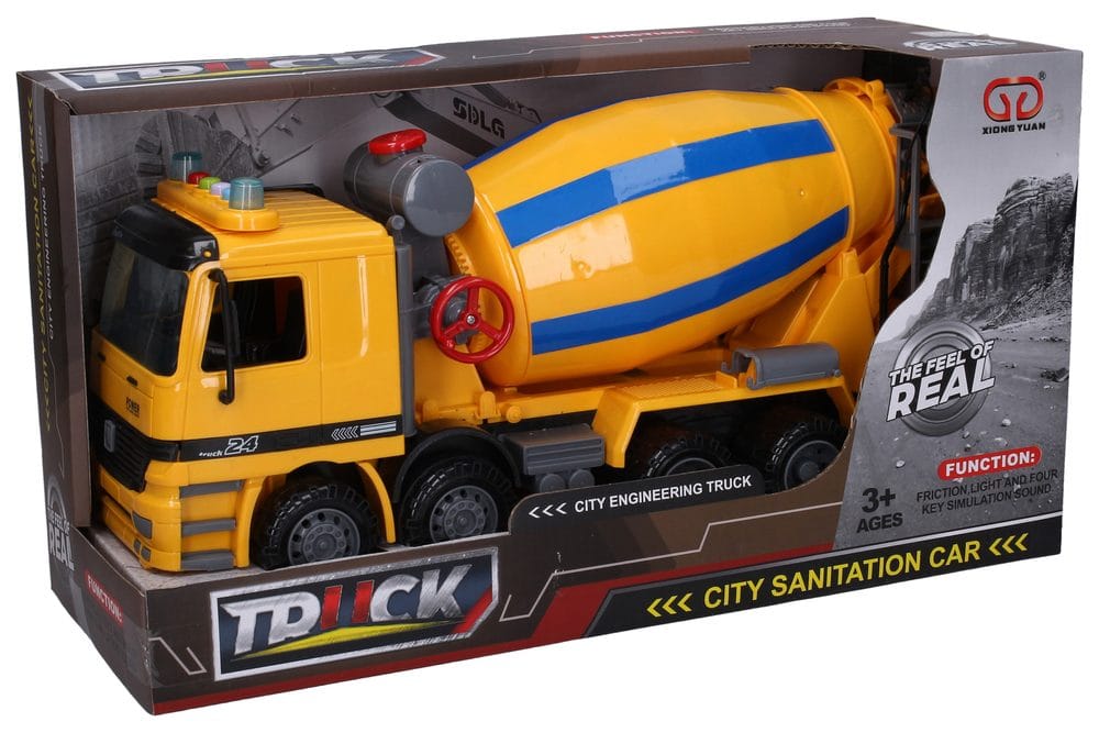 Masivní 40 cm domíchávač na setrvačník s otočným bubnem a realistickými světelnými i zvukovými efekty. Ideální volba pro malé stavitele, kteří chtějí zažít atmosféru opravdového staveniště přímo u sebe v pokoji. Obří auto domíchávač 40 cm: betonování může začít!
