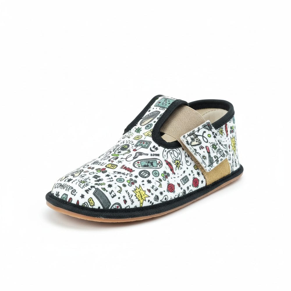 Barefoot Pegres papučky BF01 Gaming černá. Barefoot Pegres se pyšní velkým prostorem pro dětské prsty. Nejen dominantním palečkům a úzkým patám v nich bude skvěle. Papuče jsou ušity z vybraných látek. Jsou velmi měkké a mimořádně ohebné. Díky všem těmto vlastnostem se v nich děti cítí svobodně a bez omezení.