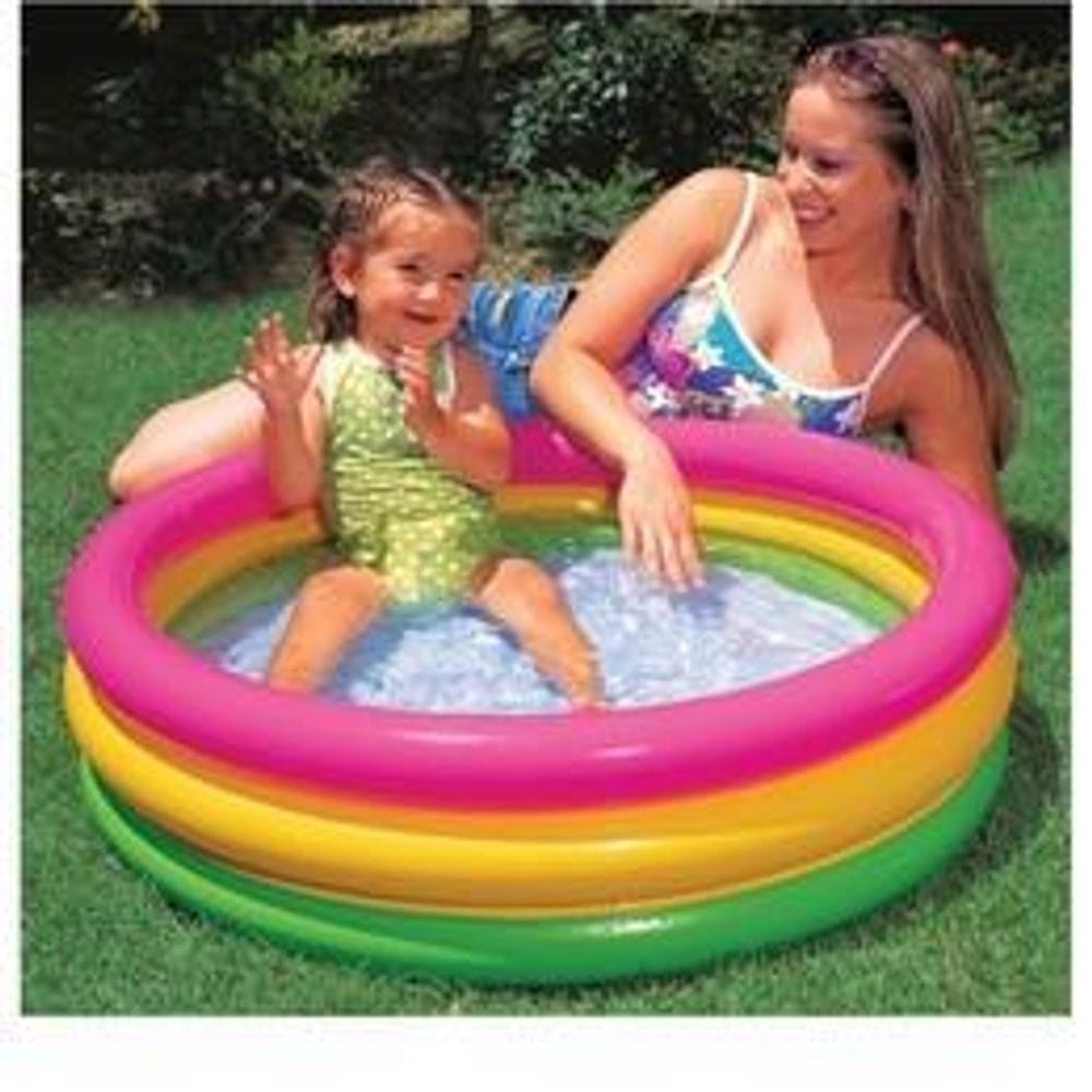 bazén Sunset 61x22cm, 1 INTEX Duhový bazének Intex 57107Nafukovací bazén Sunset 57107 pro nejmenší od Intexu je ideálním doplňkem zahrady. Děti se moc rády čachtají ve vodě a když přidáte balónky nebo jiné vodní hračky, nebudou již chtít z vody.Rozměry: 61 x 22 cmMnožství vody: 68 litrů ve výšce 17 cmMateriál vinyl: podlaha 0,18 mm, stěna 0,20 mmnafukovací dno bazénkuDoporučený věk: 1-3 roky