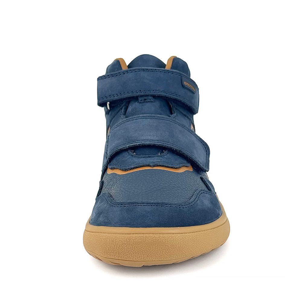 Protetika chlapecké barefoot boty HARDY JEANS | celoroční dětská obuv na suchý zip | modré kotníkové kožené boty bez klenby s flexibilní podrážkou Chlapecká Barefoot Obuv Hardy Jeans