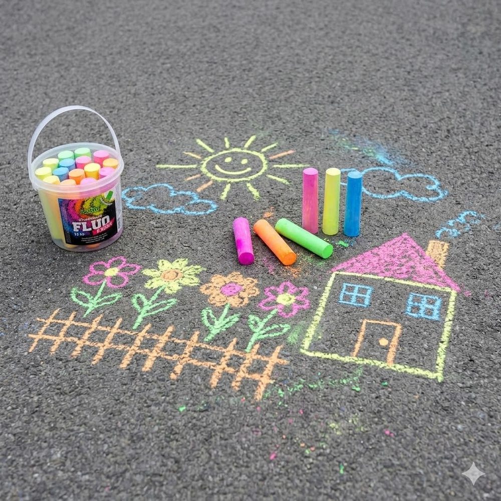 Chodníkové křídy FLUO v kyblíku 15 ks.