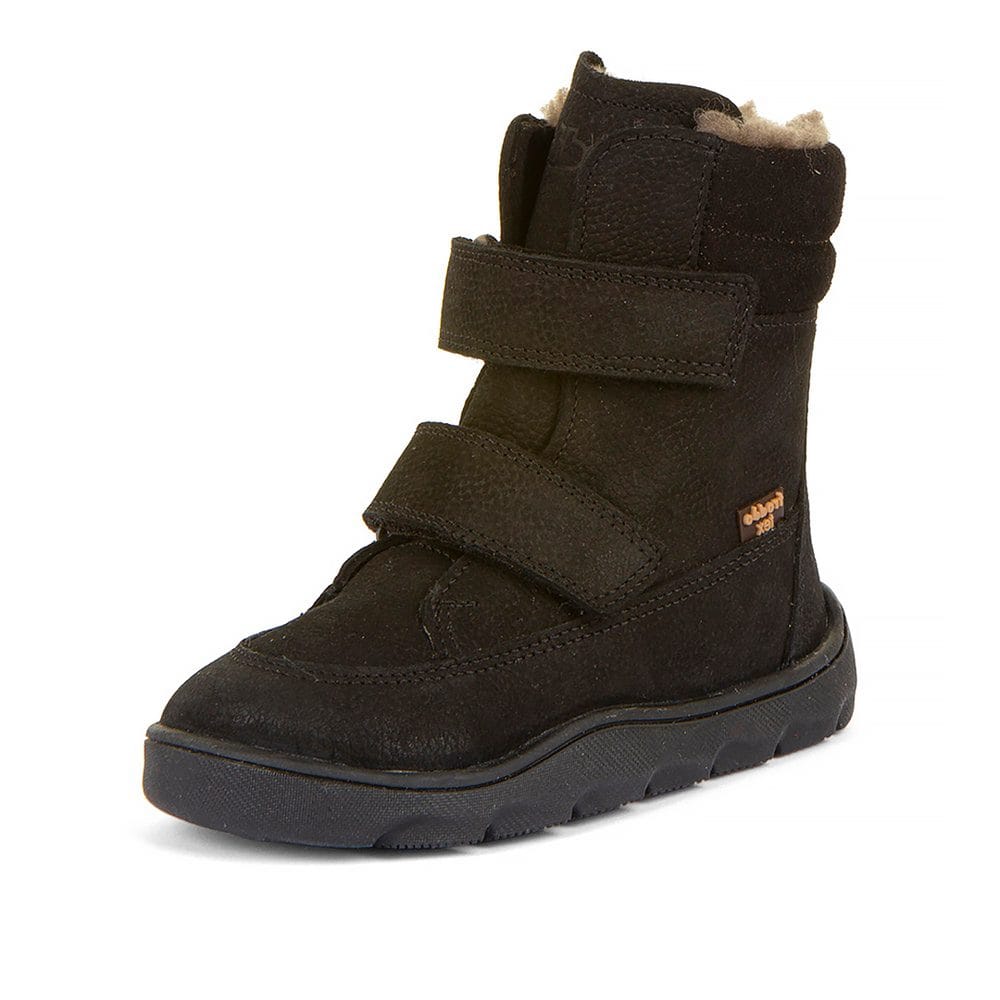 Dívčí zimní barefoot boty ZERU TEX WINTER Black, Froddo, G3160240-7, v černé barvě s membránou Froddo Stylové a funkční zimní barefoot boty Froddo, které nesmí chybět v žádném botníku. Díky vodoodpudivému nubuku, vlněné podšívce a ochraně membránou jsou ideální volbou do chladného počasí. Jejich univerzální design se snadno kombinuje s jakýmkoliv outfitem a poskytuje maximální komfort a ochranu před chladem.