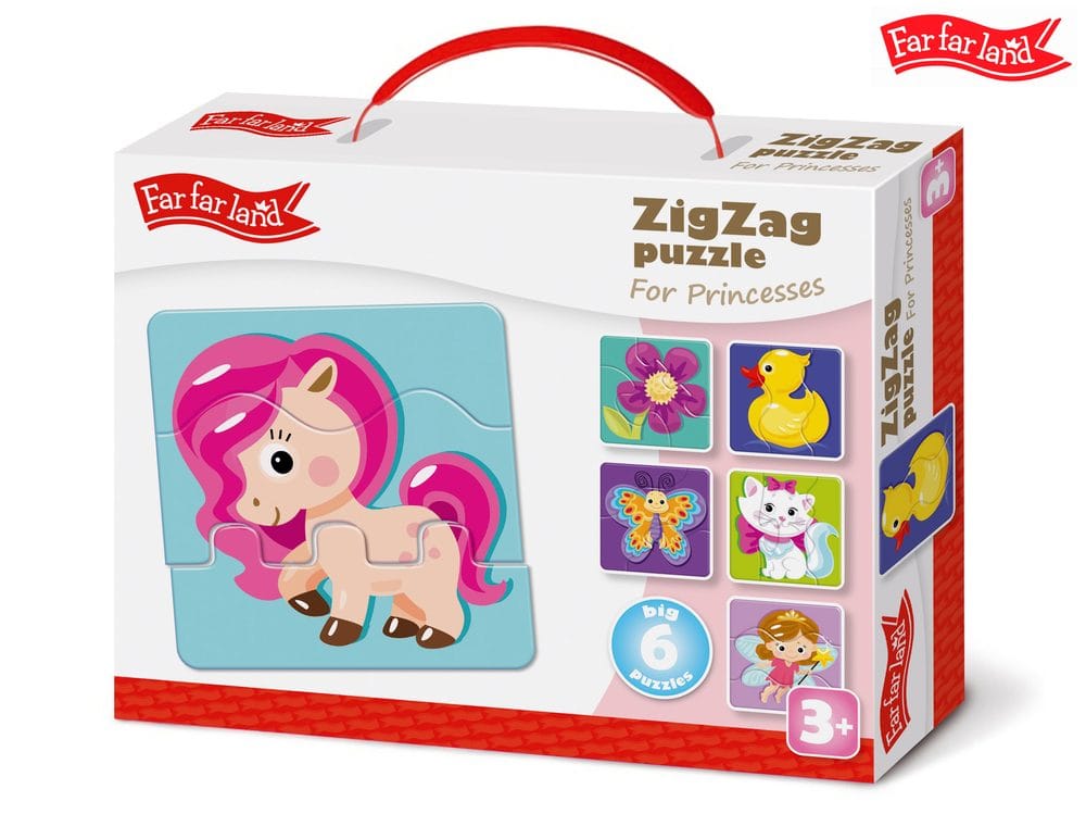 Zapomeňte na klasické tvary, tady se hraje podle „cik-cak“ pravidel! Far Far Land Puzzle ZigZag pro princezny přináší do dětského pokojíčku pohádkovou výzvu.