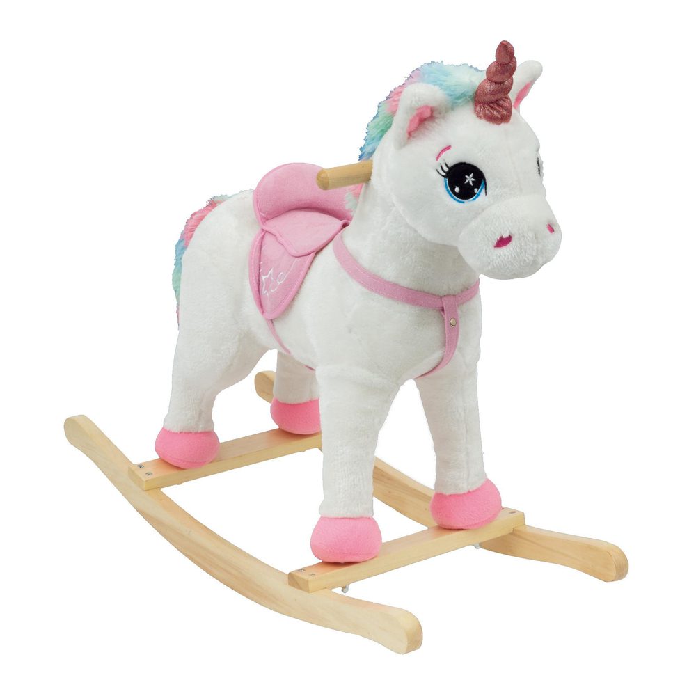 Roztomilý houpací jednorožec potěší všechny malé slečny, které toto zvířátko milují! Díky sedlu bude sezení na poníkovi pohodlné a o příjemnou zábavu se postarají zvukové efekty.