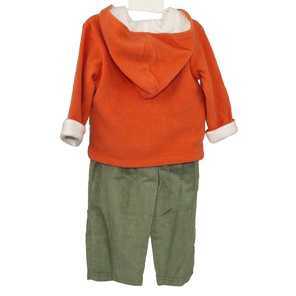 Kojenecký chlapecký set Pidilidi – mikina a manšestrové kalhotyPohodlný a stylový komplet pro malé kluky od značky Pidilidi. Set se skládá z mikiny s kapucí a manšestrových kalhot, obojí z měkkého a hřejivého 100% polyesteru. Mikina se obléká přes hlavu a má praktické zapínání na dvě patentky u krku, které usnadňuje oblékání. Přední stranu zdobí roztomilé nášivky. Kalhoty jsou v pase na gumu, mají dvě přední kapsy a pohodlný střih pro volnost pohybu.