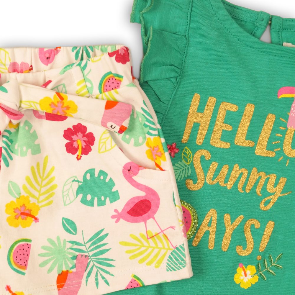 Kojenecký set dívčí – tílko a kraťasy, Minoti, Toucan 1, zelená – 86/92 | 18-24m