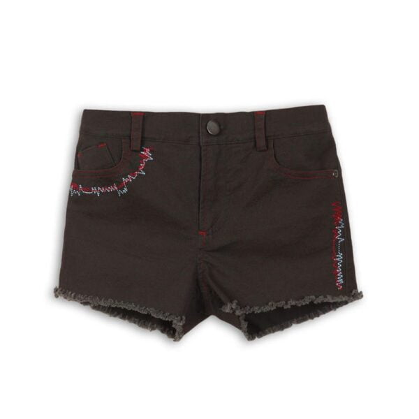 Kraťasy dívčí Minoti GLASTO 9 Dívčí džínové kraťasy rovného střihu mají stylové roztřepené lemy a také módní nášivku po stranách a kolem kapsy. Jsou doplněny praktickými předními a zadními kapsami, zapínáním na knoflík a mají poutka na možné přidání pásku.