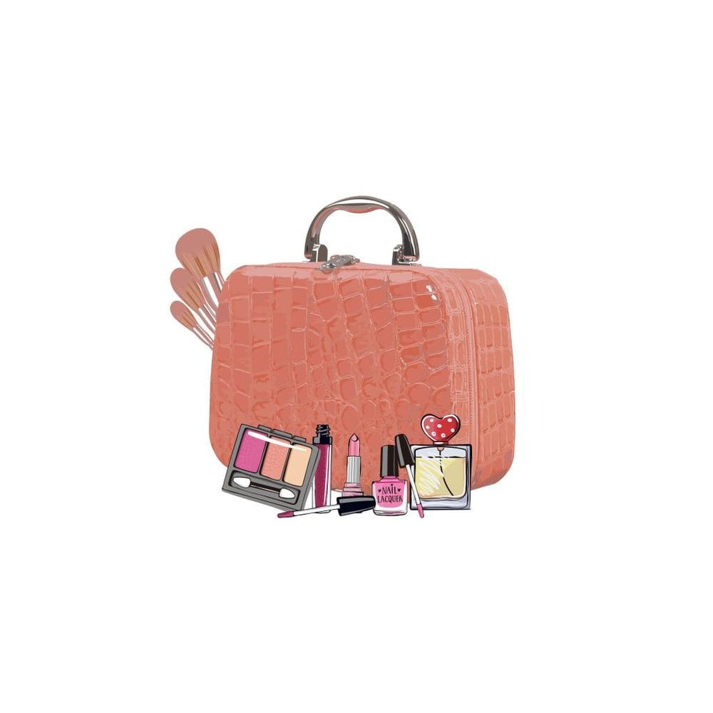Obsahuje zrcátko, umělé nehty, lesk na rty, tvářenku, oční stíny, pilníky na nehty, sadu štětců, balzám na rty, oční linky, třpytivé dekorace.