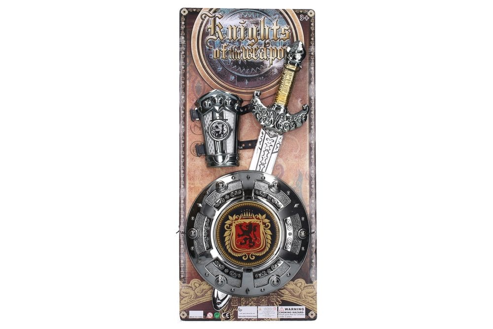 Meč se štítem. Velikost 51 cm. Ale ne! Stráž z noční hlídky spatřila z hradeb nepřátelské vojsko, které se snaží dobýt pevnost a unést princeznu! Jako správný rytíř to nemůžeš dopustit! Obleč zbroj, popadni meč a vydej se ochránit princeznu!