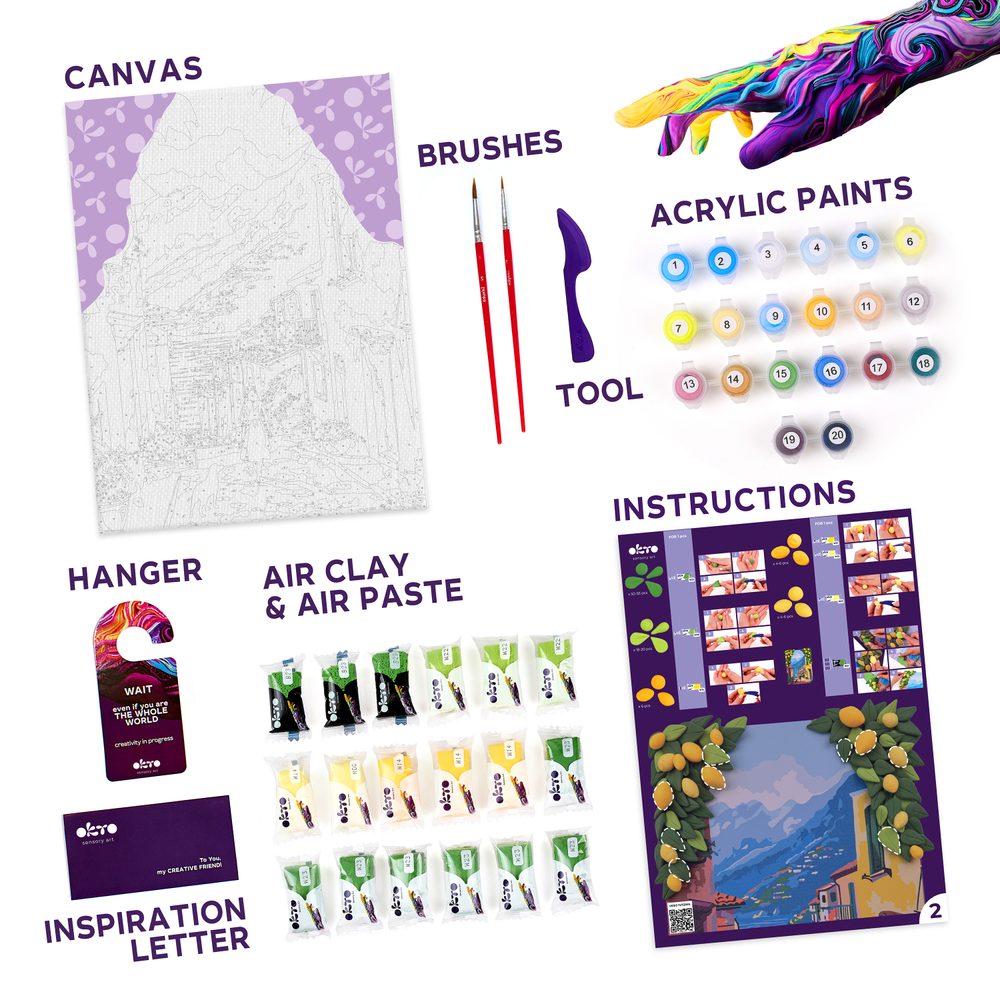 OKTO 3D malba a modelování – Lemon Weekend 30×40 cm✅ Unikátní technika 2v1 kombinuje přesnost malby s hravostí modelování. ✅ kompletní umělecké vybavení najdete uvnitř balení včetně barev a nástrojů.✅ Samoschnoucí hmota vytvrdne na vzduchu a zajistí trvanlivost vašeho díla. ✅ Předloha s čísly zaručí skvělý výsledek i těm, kteří s uměním teprve začínají. Svěží letní atmosféra ve 3D