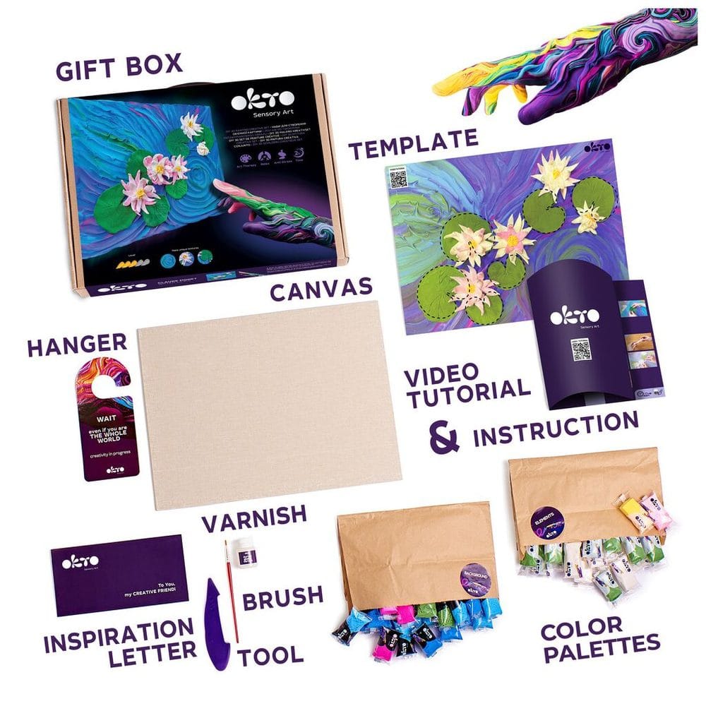 ✅ Ikonický motiv leknínů, který do interiéru vnese eleganci a umělecký nádech ✅ Hmatatelný 3D efekt, díky němuž okvětní lístky vystupují přímo z vodní hladiny ✅ Vysoký lesk a ochrana s akrylovým lakem imitujícím odlesky vody ✅ kompletní umělecké vybavení – od pevného plátna až po tvarovací nástroje Klid a harmonie, která vystupuje z plátna: OKTO – Lekníny