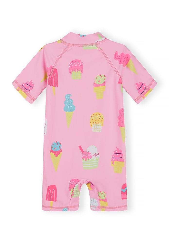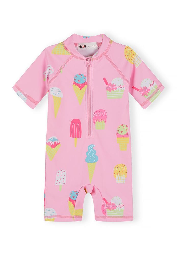 Spojte styl, pohodlí a ochranu před sluncem s těmito rozkošnými jednodílnými plavkami! Díky zářivě růžové barvě s veselým potiskem zmrzlinek a praktickému střihu s krátkým rukávem jsou ideální volbou pro všechny malé milovnice vody.