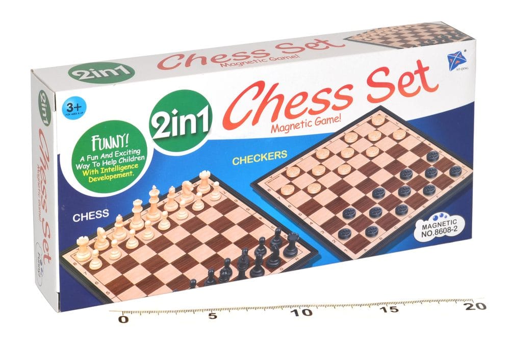 Šachy/dáma 2v1 magnetické Zkrať si cestování s oblíbenou hrou šachy+ dámy! Díky magnetické hrací ploše zůstanou herní komponenty na svém místě! Zdokonaluj své strategické myšlení a bystrost, ať už jsi kdekoli!