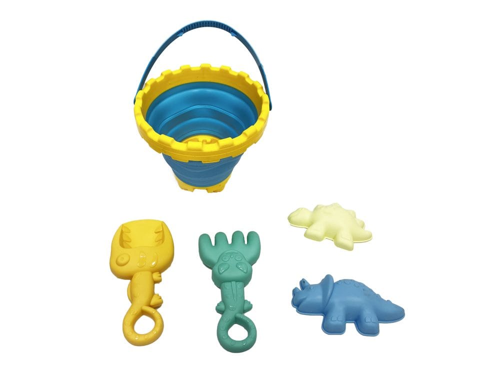 Pětidílný dinosauří set obsahuje kyblík, nářadí a dvě originální formičky pro každého malého stavitele.
