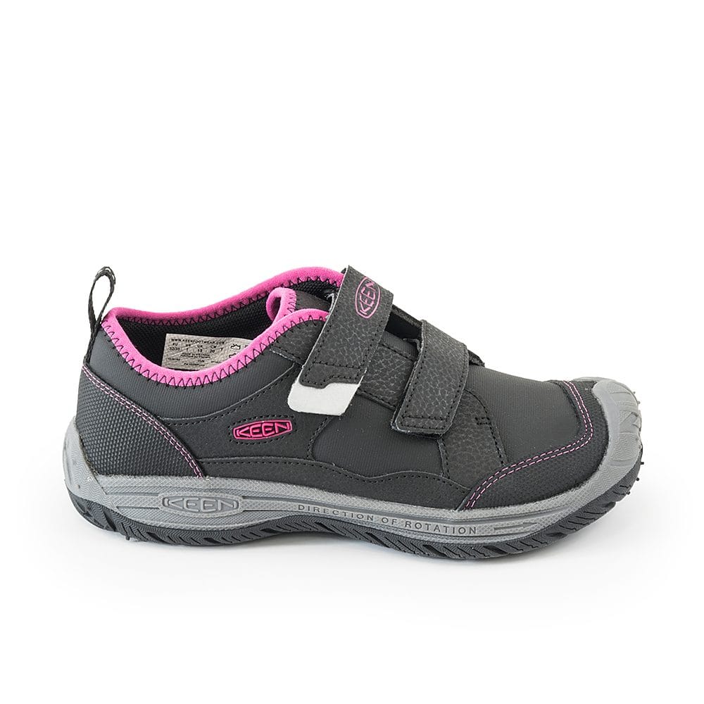 sportovní celoroční obuv SPEED HOUND black/fuchsia purple, Keen, 1026212/1026193 Děti chtějí více nezávislosti a svobody. Vy jim to také přejete. Ale záleží vám také na bezpečnosti a pohodlí. Udělali jsme radost všem a rozšířili jsme ikonickou ochranu naší odolné gumové špičky až na patu – na novou hybridní botu s přilnavým vzorkem inspirovaným pneumatikami. Připravená na kolo, brusle i koloběžku.