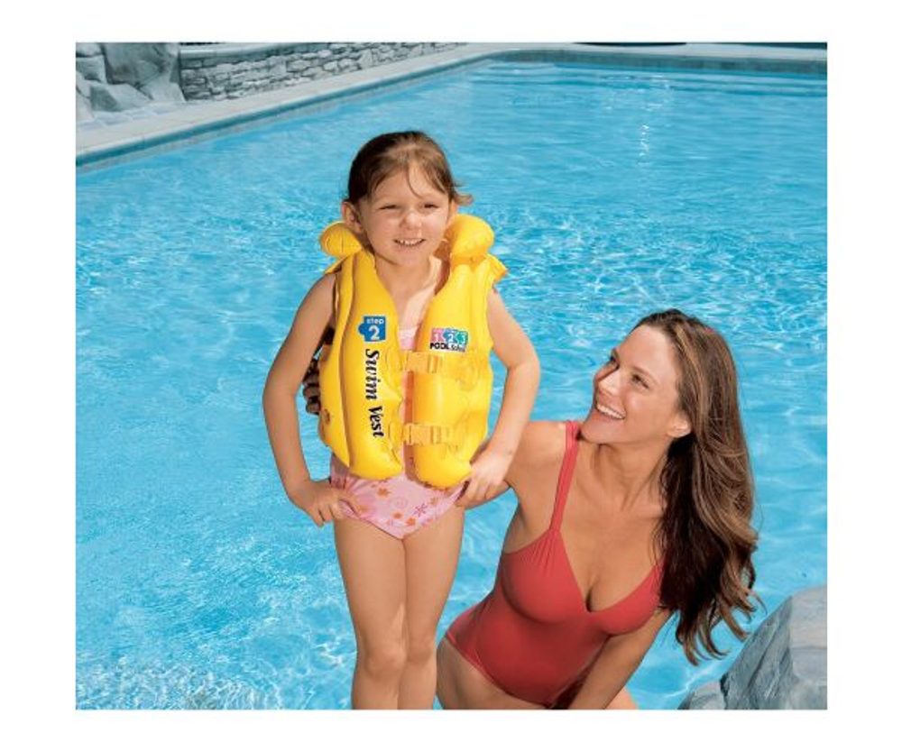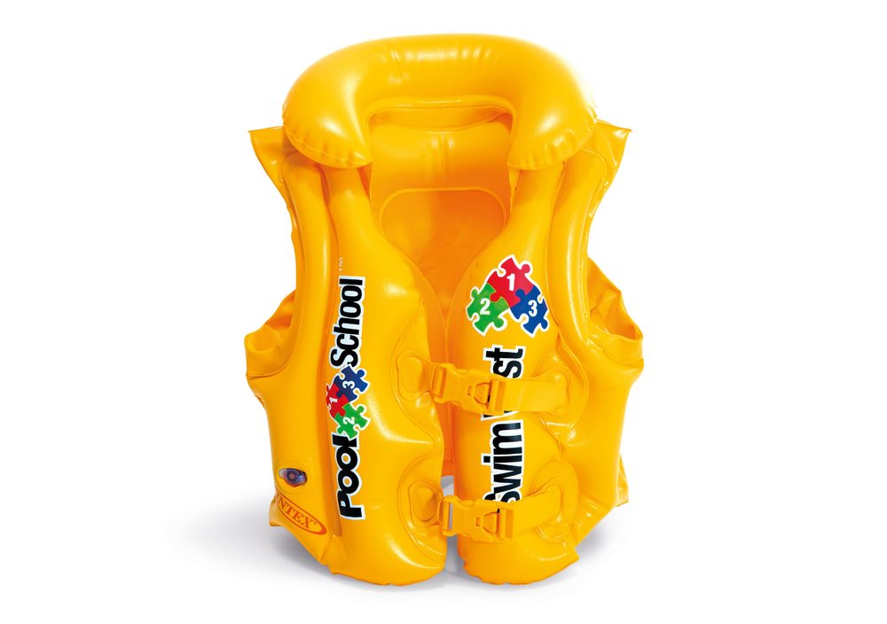 Žlutá nafukovací vesta usnadní výuku plavání dětem.