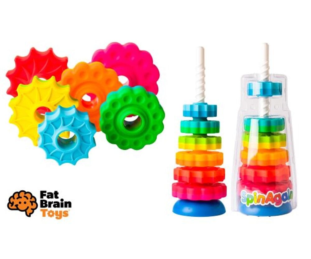 SpinAgain – věž z rotujícími disky. Jednotlivé kotouče se pohybují po závitu. Je možné je skládat v libovolném pořadí. SpinAgain – věž z rotujícími disky. Jednotlivé kotouče se pohybují po závitu. Je možné je skládat v libovolném pořadí.